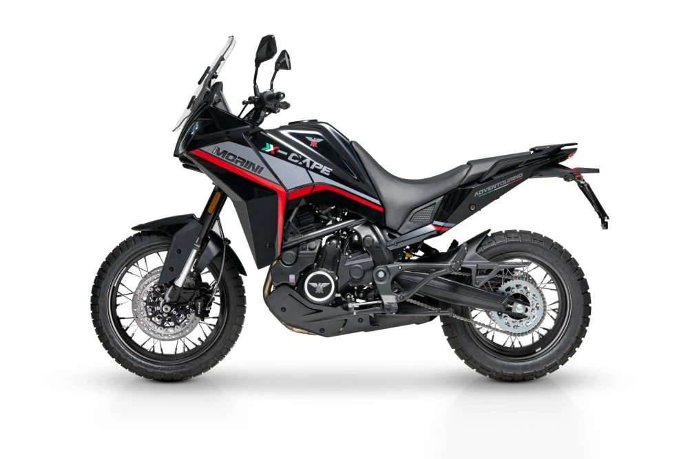 X-CAPE je dobrodružstvo v štýle Moto Morini: všestrannosť, zábava a pohodlie vo futuristickom pútavom vzhľade.19" predné koleso a nastaviteľná vidlica s priemerom 50 mm zaručujú úžasnú priľnavosť k terénu a vozovke, vďaka čomu sa udržíte v sedle ako v horskom priesmyku, tak aj na prašnej ceste.